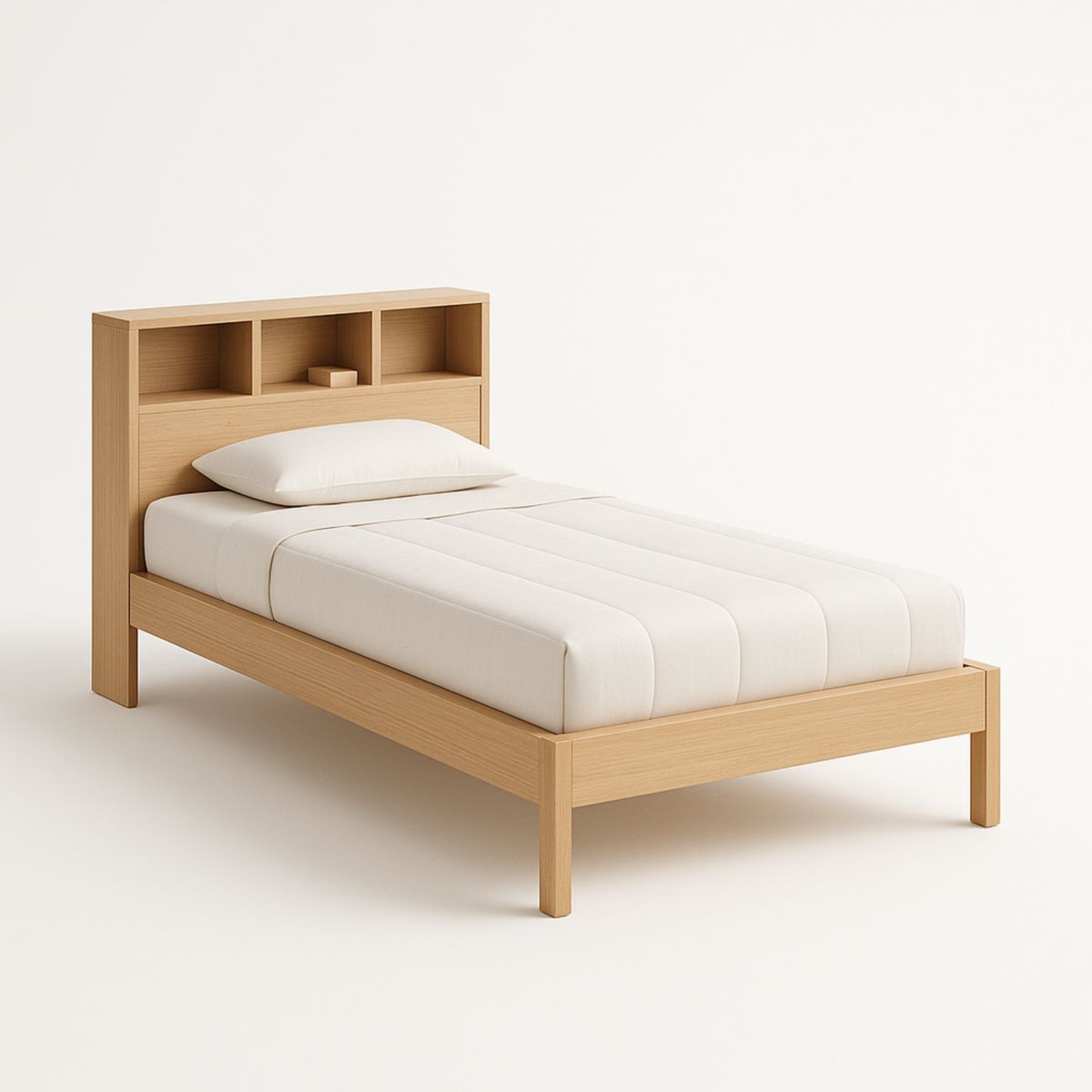 Lit simple en bois et tissu beige avec matelas et coussin€136,16